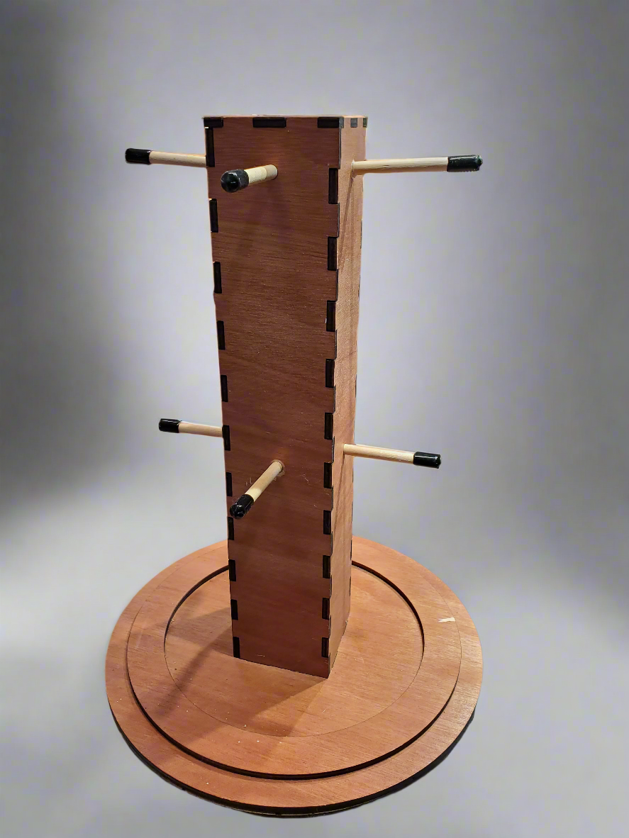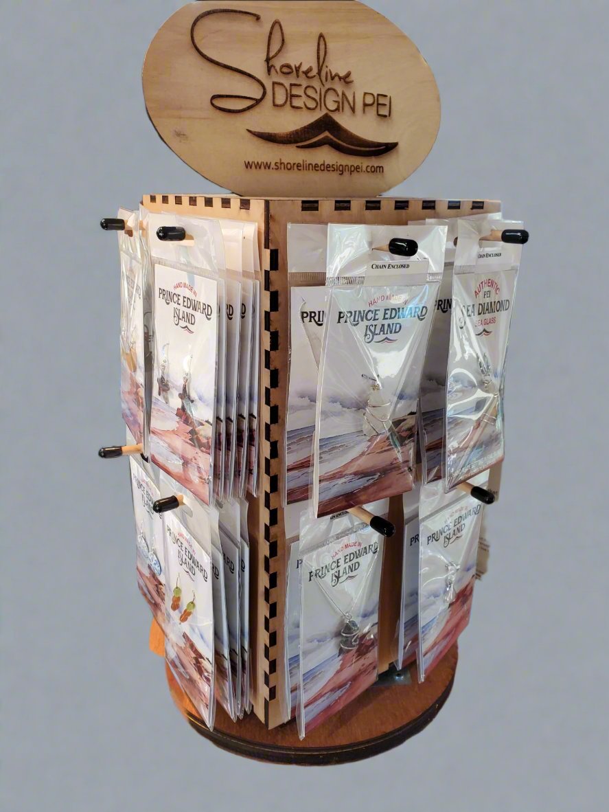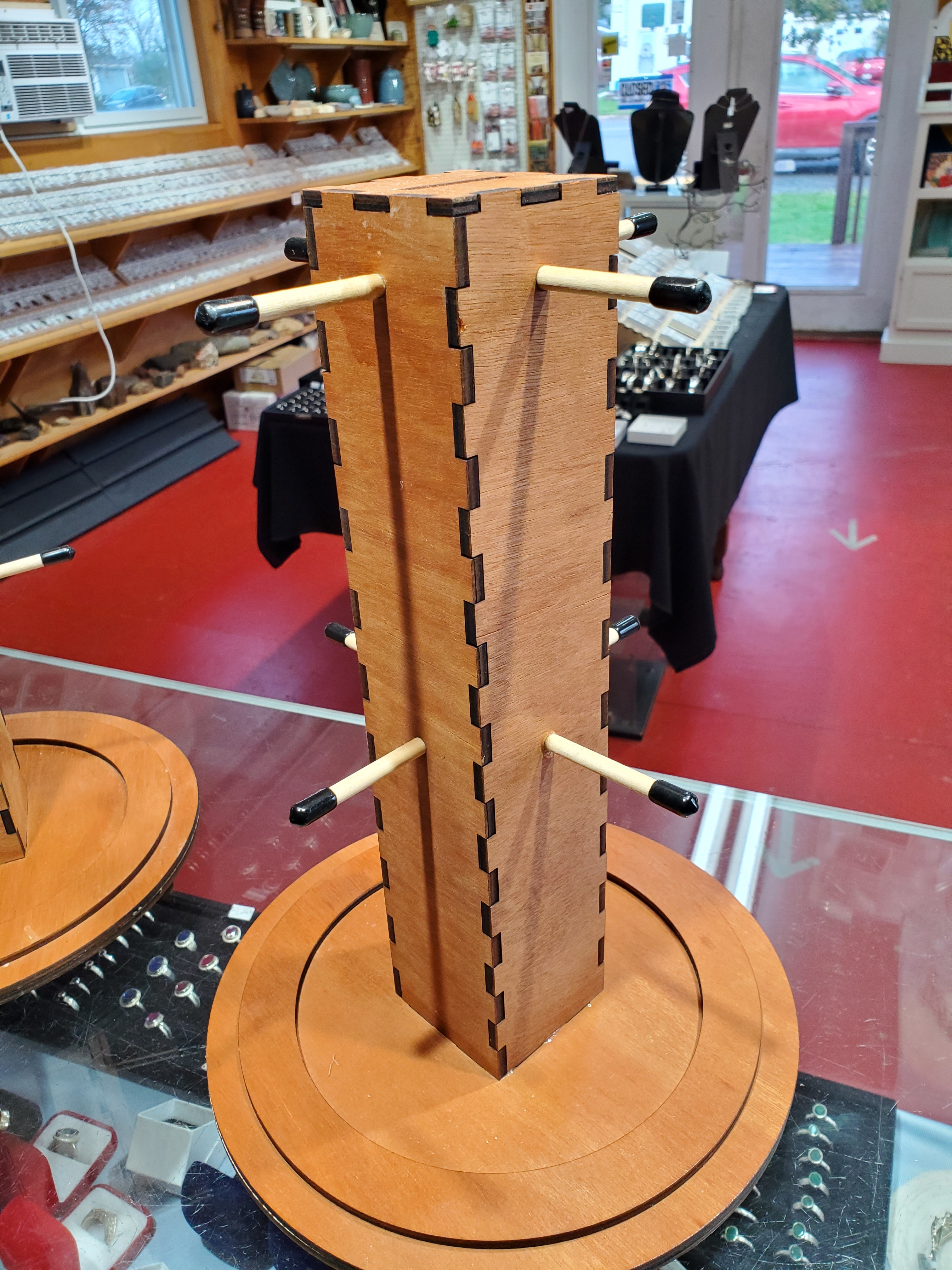 Modify the rotating display with more pegs, taller, shorter or put customized logos on the top or the tower.